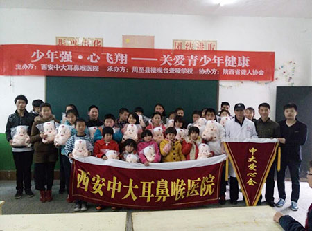 据了解,西安中大耳鼻喉医院一直致力于爱心公益活动,以传递爱心、回报社会为己任。曾先后开展“社区公益行系列义诊活动”、陕西2015“服务百姓健康行动”大型义诊活动、老年公寓送健康活动、“让爱有声—聋人公益救助”活动、“爱的呼唤—健康听力在中大”、“3月3爱耳日”系列活动等,先后被评为“”、热心社会公益事业优秀机构、陕西聋人协会定点医疗单位等。