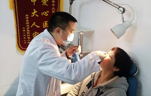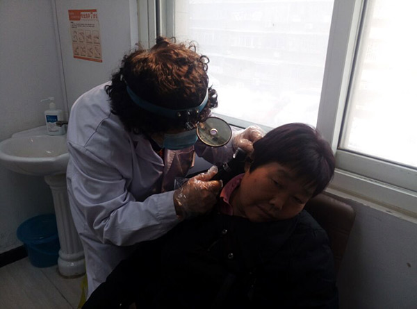 马祥德主任正在为聋人朋友检查
