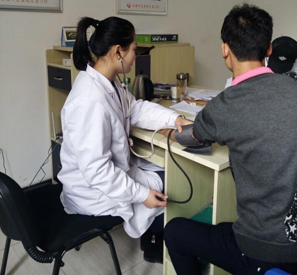 医护人员正在为学生量血压